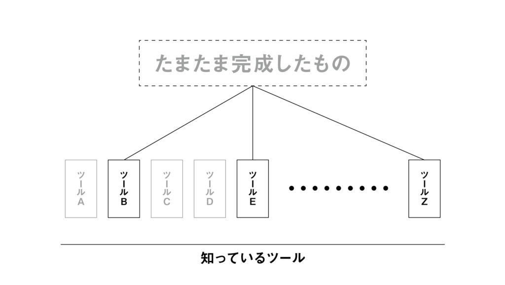 また、たまたまツール同士を組み合わせて何かができたとしても、それに何か意味があるかというとその時点ではなく、図に示したツールZに続くツールAAという新たなツールが生まれたにすぎません。